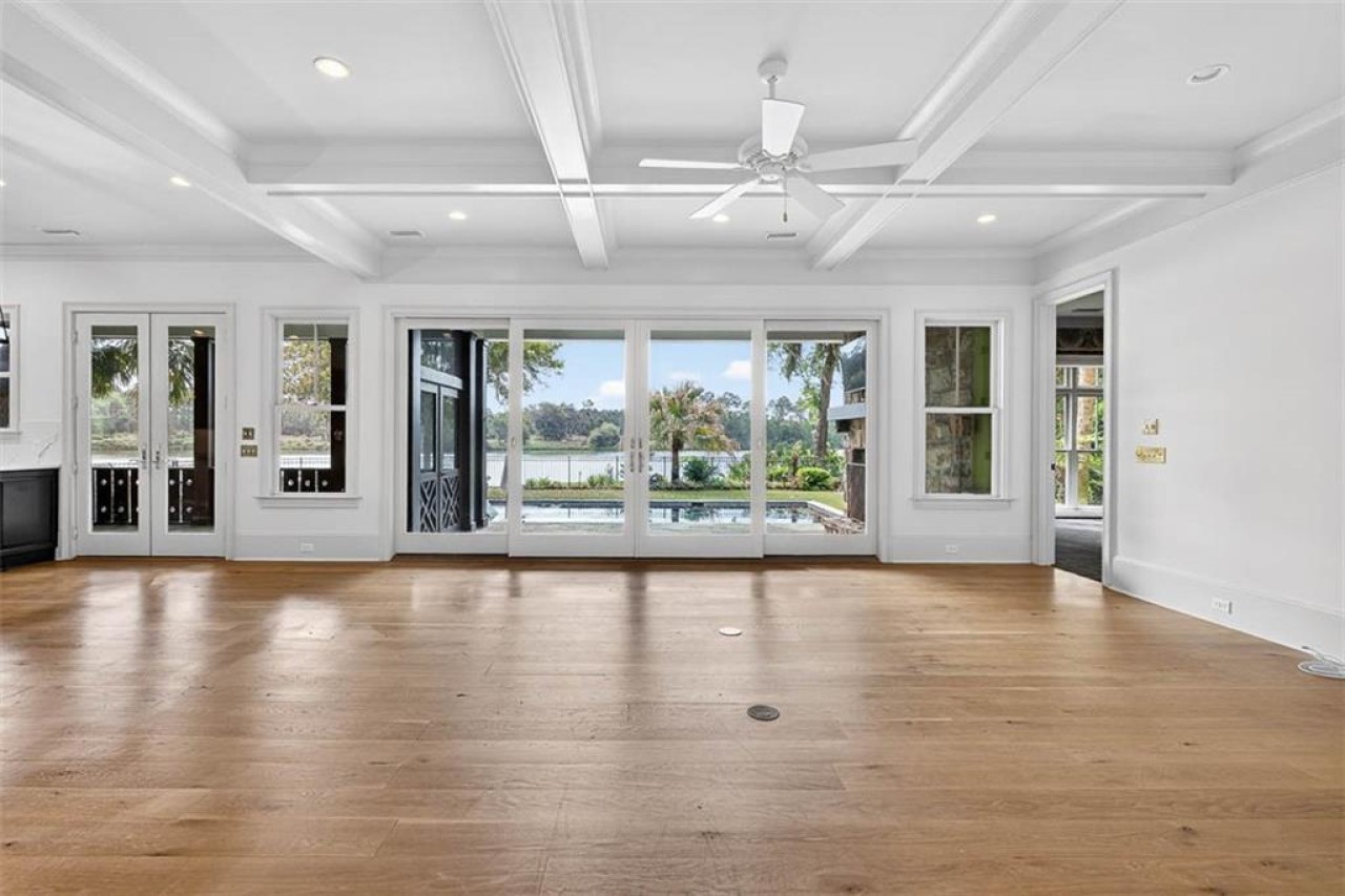 Welcome to 23 Bracklin Court in Frederica Township, a stunning coastal retreat nestled on beautiful St. Simons Island. This thoughtfully designed 4-bedroom, 4.5-bathroom, two-story home offers an ideal blend of luxury, comfort, and functionality—all set against a serene expansive lake view. The home’s striking stucco and stone exterior creates timeless curb appeal, complemented by a spacious two-car garage with a whole-home generator for added peace of mind. Step inside to an inviting open floor plan featuring rich hardwood floors, plantation shutters throughout, and an abundance of natural light in every room. At the heart of the home is a beautifully appointed chefs kitchen designed for both everyday living and entertaining. Enjoy cooking on the impressive 5-burner La Cornue range, with additional features including a farmhouse sink with disposal, built-in KitchenAid refrigerator, wine fridge, and ample cabinetry and workspace. The main level offers a private primary suite, guest bedroom, a spacious family room, and a dedicated office—perfect for today’s flexible lifestyle needs. Upstairs, you’ll find two additional guest bedrooms, each with its own bathroom, providing comfort and privacy for family and visitors. A floored attic offers excellent storage space. Outdoor living is just as exceptional. The fenced backyard overlooks a tranquil lake and is designed for year-round enjoyment. Relax by the heated pool and hot tub, or entertain with ease at the fully equipped grilling station featuring a Green Egg. The covered patio with a wood-burning fireplace and a screened porch with a skylight provide inviting spaces to unwind and gather. This exceptional property offers the best of coastal living with luxury finishes, thoughtful design, and picturesque surroundings—all in a desirable St. Simons Island location. Listing courtesy of Georgia Coast Realty.
