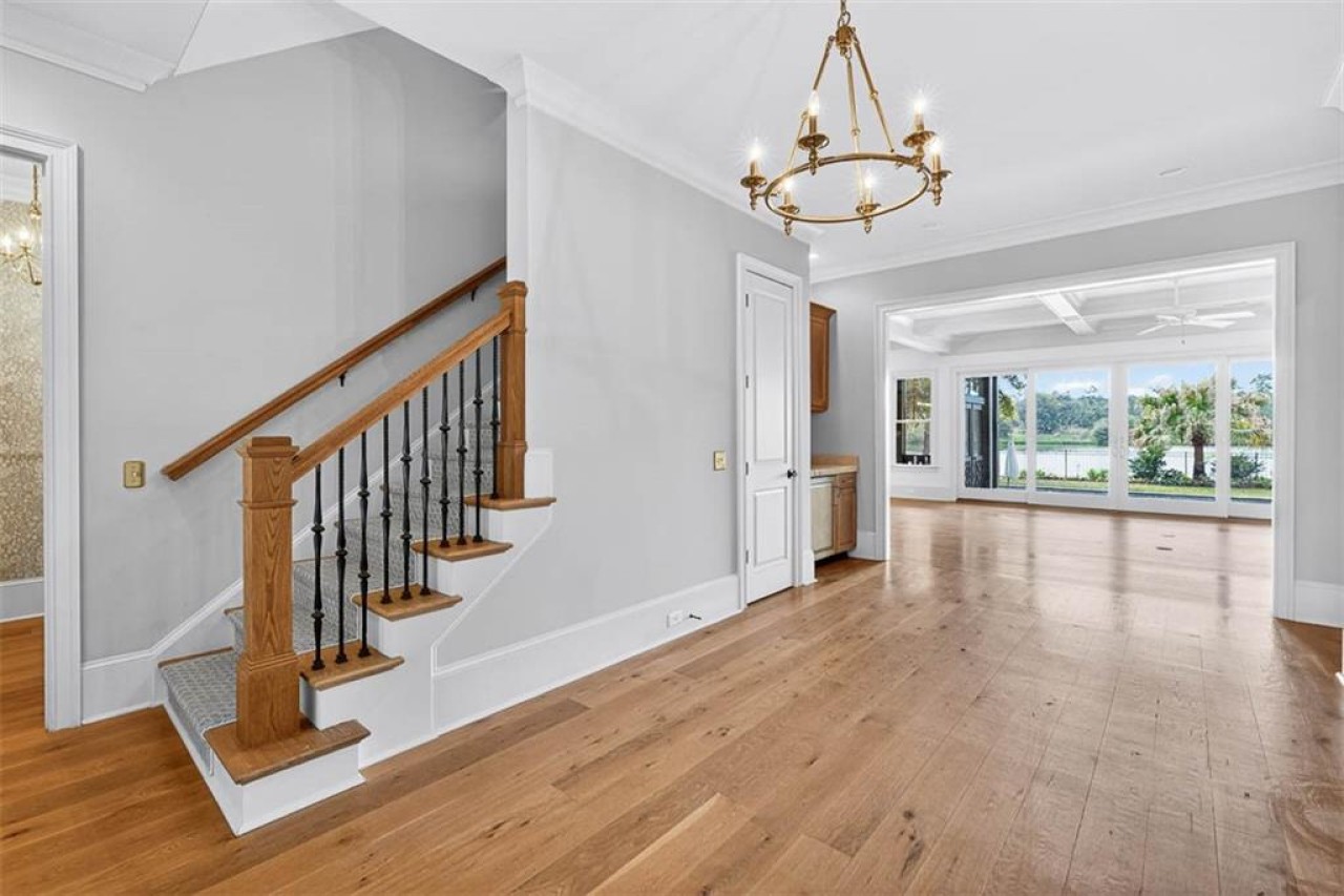 Welcome to 23 Bracklin Court in Frederica Township, a stunning coastal retreat nestled on beautiful St. Simons Island. This thoughtfully designed 4-bedroom, 4.5-bathroom, two-story home offers an ideal blend of luxury, comfort, and functionality—all set against a serene expansive lake view. The home’s striking stucco and stone exterior creates timeless curb appeal, complemented by a spacious two-car garage with a whole-home generator for added peace of mind. Step inside to an inviting open floor plan featuring rich hardwood floors, plantation shutters throughout, and an abundance of natural light in every room. At the heart of the home is a beautifully appointed chefs kitchen designed for both everyday living and entertaining. Enjoy cooking on the impressive 5-burner La Cornue range, with additional features including a farmhouse sink with disposal, built-in KitchenAid refrigerator, wine fridge, and ample cabinetry and workspace. The main level offers a private primary suite, guest bedroom, a spacious family room, and a dedicated office—perfect for today’s flexible lifestyle needs. Upstairs, you’ll find two additional guest bedrooms, each with its own bathroom, providing comfort and privacy for family and visitors. A floored attic offers excellent storage space. Outdoor living is just as exceptional. The fenced backyard overlooks a tranquil lake and is designed for year-round enjoyment. Relax by the heated pool and hot tub, or entertain with ease at the fully equipped grilling station featuring a Green Egg. The covered patio with a wood-burning fireplace and a screened porch with a skylight provide inviting spaces to unwind and gather. This exceptional property offers the best of coastal living with luxury finishes, thoughtful design, and picturesque surroundings—all in a desirable St. Simons Island location. Listing courtesy of Georgia Coast Realty.