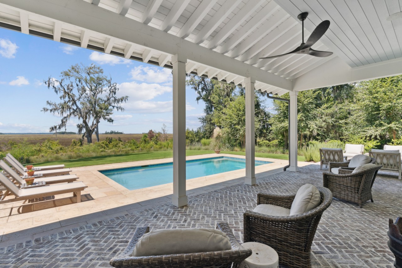 This stunning Lowcountry residence exemplifies timeless design, custom craftsmanship, and the casually elegant lifestyle that defines Frederica Living. Thoughtfully designed with an open, flowing floor plan and expansive living spaces, the home is positioned to capture sweeping western marsh views through floor-to-ceiling windows. At the heart of the home, the inviting gathering room features beamed ceilings, a cozy fireplace, built-in bookcases, and seamless access to both dining and outdoor living areas. French doors open to a covered porch overlooking the serene marsh, an ideal space to unwind and take in the view. The gourmet kitchen is a chef’s dream, equipped with top-of-the-line appliances, a large center island with seating, a generous pantry, and direct connection to the gathering and dining areas, perfect for everyday living and entertaining alike. For year-round enjoyment, the screened porch offers an additional entertaining space with a wood-burning fireplace, gas grill, summer kitchen, beverage refrigerator, and soaring vaulted ceilings, all framed by the inspiring natural beauty of the marsh. Upstairs, guests will enjoy two spacious en-suite bedrooms and a comfortable family room retreat, all with stunning marsh views. The three-car garage includes a 930-square-foot bonus room that can be finished to suit your needs, whether as a studio, guest suite, or office. Set on a beautifully private 2-acre homesite beneath a canopy of majestic live oaks, this home offers a rare combination of natural beauty, privacy, and proximity to all of Frederica Golf Club’s premier amenities. Application rights to join Frederica Golf Club at the prevailing initiation fee are available, subject to membership approval.