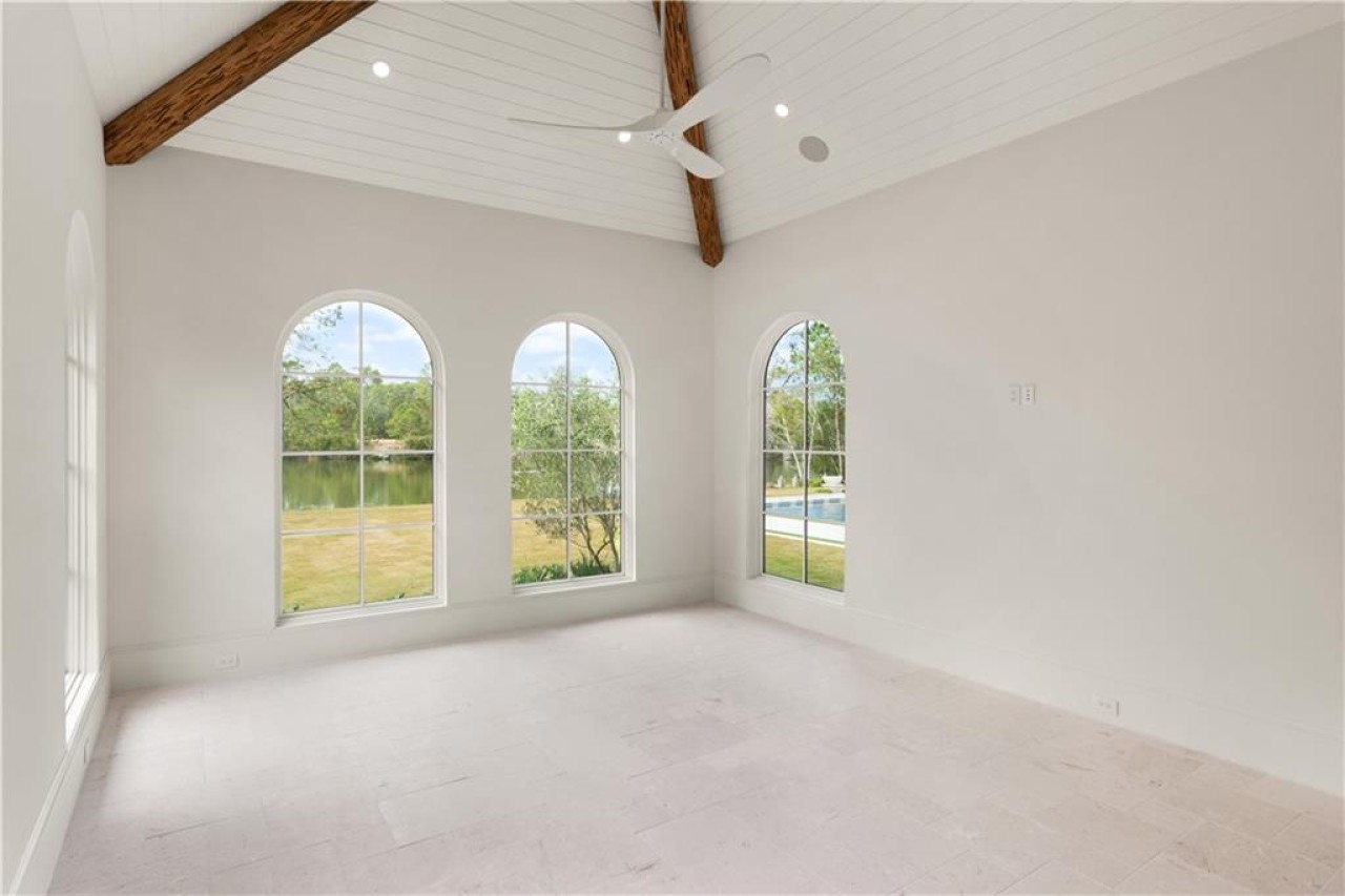 Nestled on one of the less frequented roads in Frederica Township and overlooking the lake, this all-on-one-level new construction home combines luxury living and the beauty of nature. Overflowing with thoughtful details, this impressive home features arched windows and walkways, Italian stone floors, breathtaking vaulted ceilings with pecky cypress wood detailing, and natural light filling every corner of this airy 4-bedroom, 4.5 bathroom European-style beauty. Step inside to discover a spacious open floor plan where the heart of the home awaits. The gourmet kitchen is a chef's dream, complete with state-of-the-art appliances, sleek countertops, and a scullery for additional prep and storage space. Entertain effortlessly in the adjacent dining area or gather around the cozy fireplace in the grand living room. Tucked away from the main living areas, the den is the perfect spot for a quiet conversation or watching your favorite movie. The master suite is a true private retreat with stunning lake views, a luxurious ensuite bathroom featuring a soaking tub and dual vanities, and an impressive walk-in closet. Each additional bedroom is thoughtfully designed with ample space and privacy. The large study is thoughtfully located at the front of the home, just as you enter the home from the breezeway connecting the 3-car garage. Outside, the front porch welcomes you with its charming appeal, while the expansive back porch offers a perfect spot to unwind and savor the picturesque views of the tranquil lake. Imagine hosting gatherings or simply relaxing in this idyllic outdoor space complete with an outdoor kitchen overlooking your picturesque private, spa-like pool and meticulously landscaped yard complete with a fire pit and private dock. Access to amenities is subject to Frederica Golf Club membership. Please inquire about the special membership opportunity available with the purchase of this home. Don't miss your chance to own this exceptional new construction home with unparalleled views. Construction completion is estimated for December 2024. Listing courtesy of © 2016 Golden Isles Multiple Listing Service (GIMLS). Information deemed reliable, but not guaranteed. Listing courtesy of Situs Real Estate.